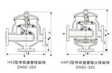HXF2带双接管呼吸阀根据国家标准《石油化工企业设计防火规范》(GB50160-92)之规定:甲、乙类液体的固定顶罐,应设阻火器和呼吸阀。可见呼吸阀、阻火器是储罐不可缺少的安全设施。它不仅能维持储罐气压平衡,确保储罐在超压或真空时免遭破坏,且能减少罐内介质的挥发和损耗。上海OD网页版-OD(中国)官方厂生产的呼吸阀,具有结构紧凑、通气量大、泄漏量小、密封性能好等特点。