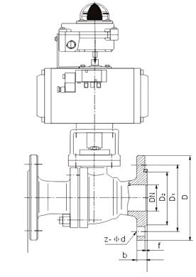 Q641F气动法兰球阀是一种转角为90°的旋转类阀门,密封性能优良,流量系数大,流阻系数小,结构简单,使用寿命长,便于维修。配用的执行机构是引进国外先进技术生产的Bray系列气缸式执行机构,球阀分单作用和双作用两种型号。产品广泛应用于化工、石油、轻纺、电力、食品制药、制冷、造纸行业的系统控制。